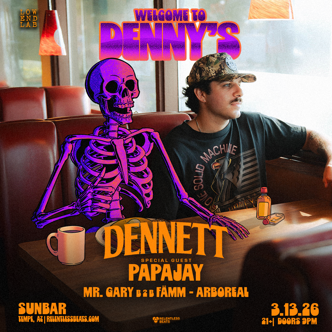 Relentless Beats presented Dennett on Friday, March 13, 2026 at Sunbar in Tempe, AZ. This show is 21+.