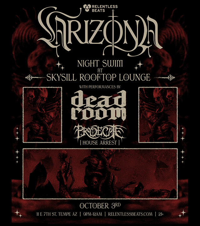 Relentless Beats presented Svdden Death Dead Room Night Swim on Friday, October 3, 2025 at Skysill in Tempe, AZ. This show is 21+.